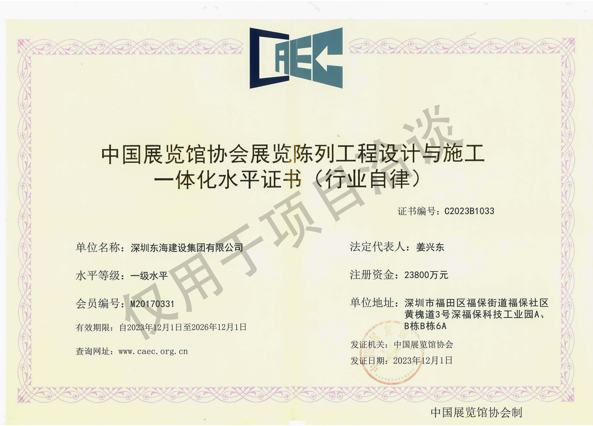 展覽陳列工程設(shè)計施工一體化資質(zhì)證書